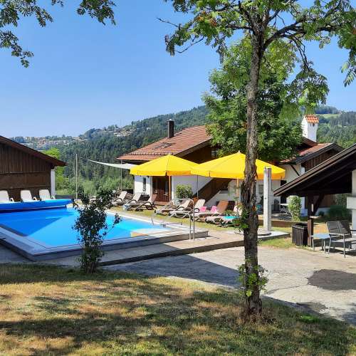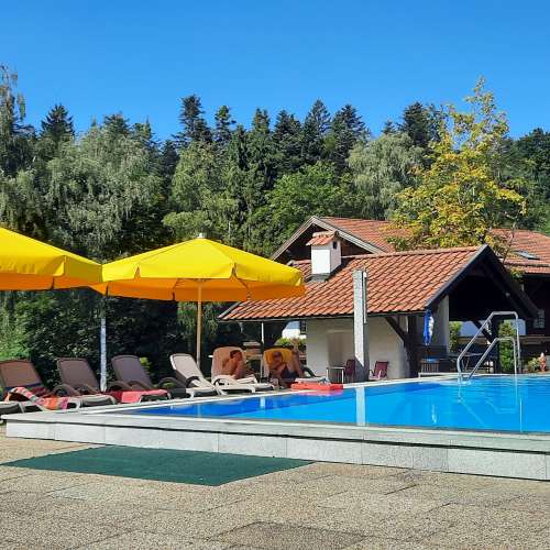 Schwimmbad mit Liegewiese und Grillhäuschen