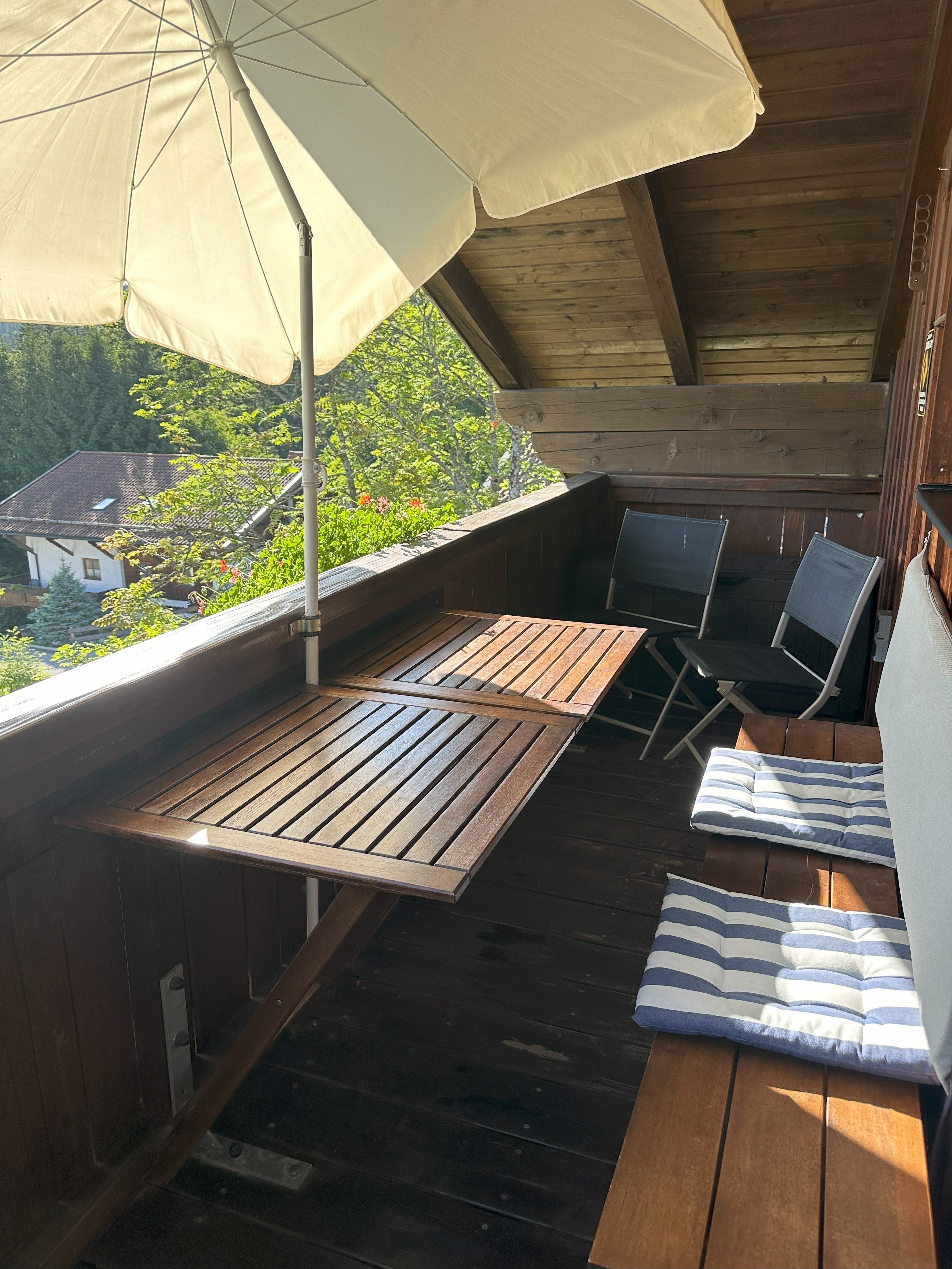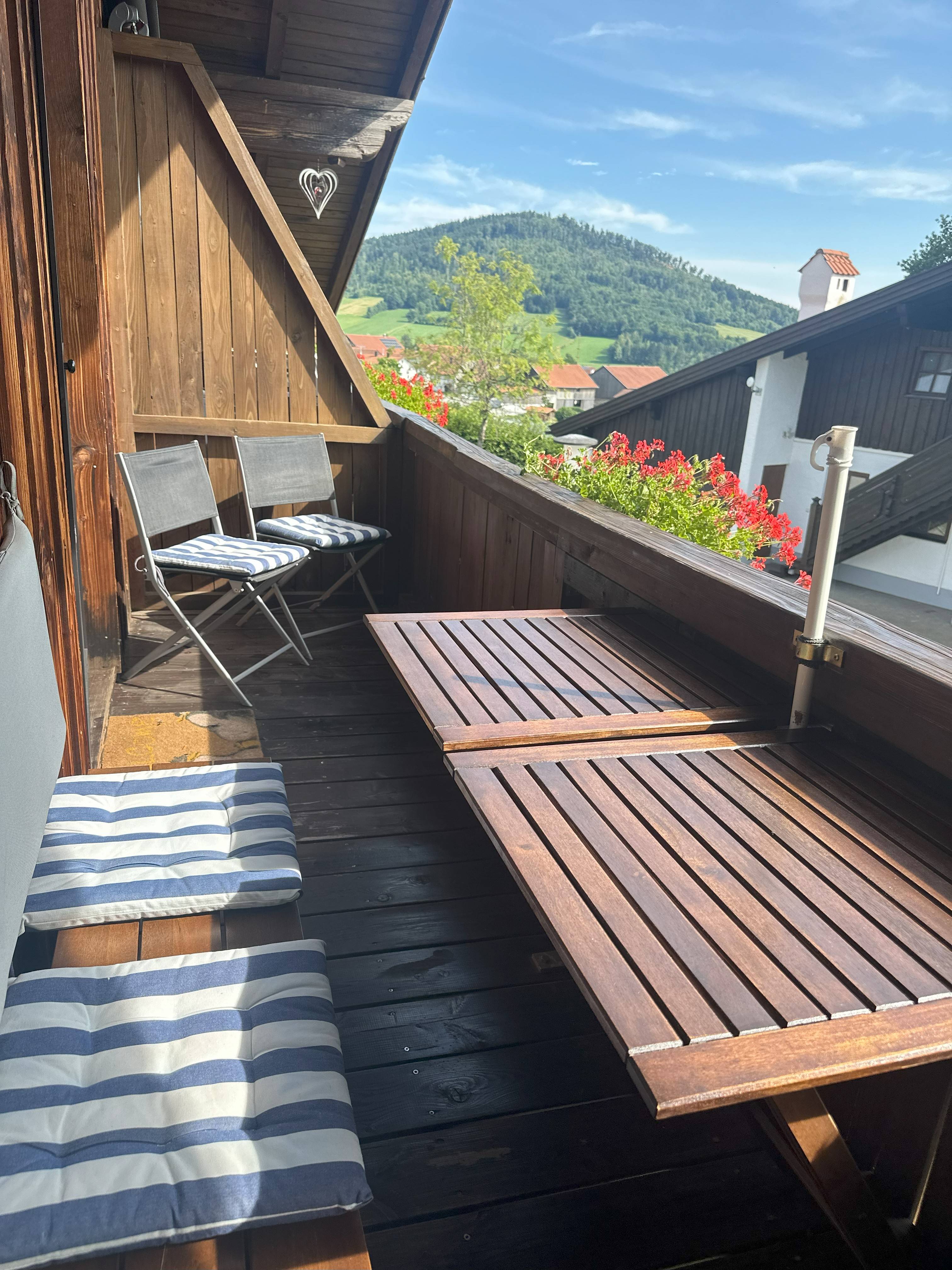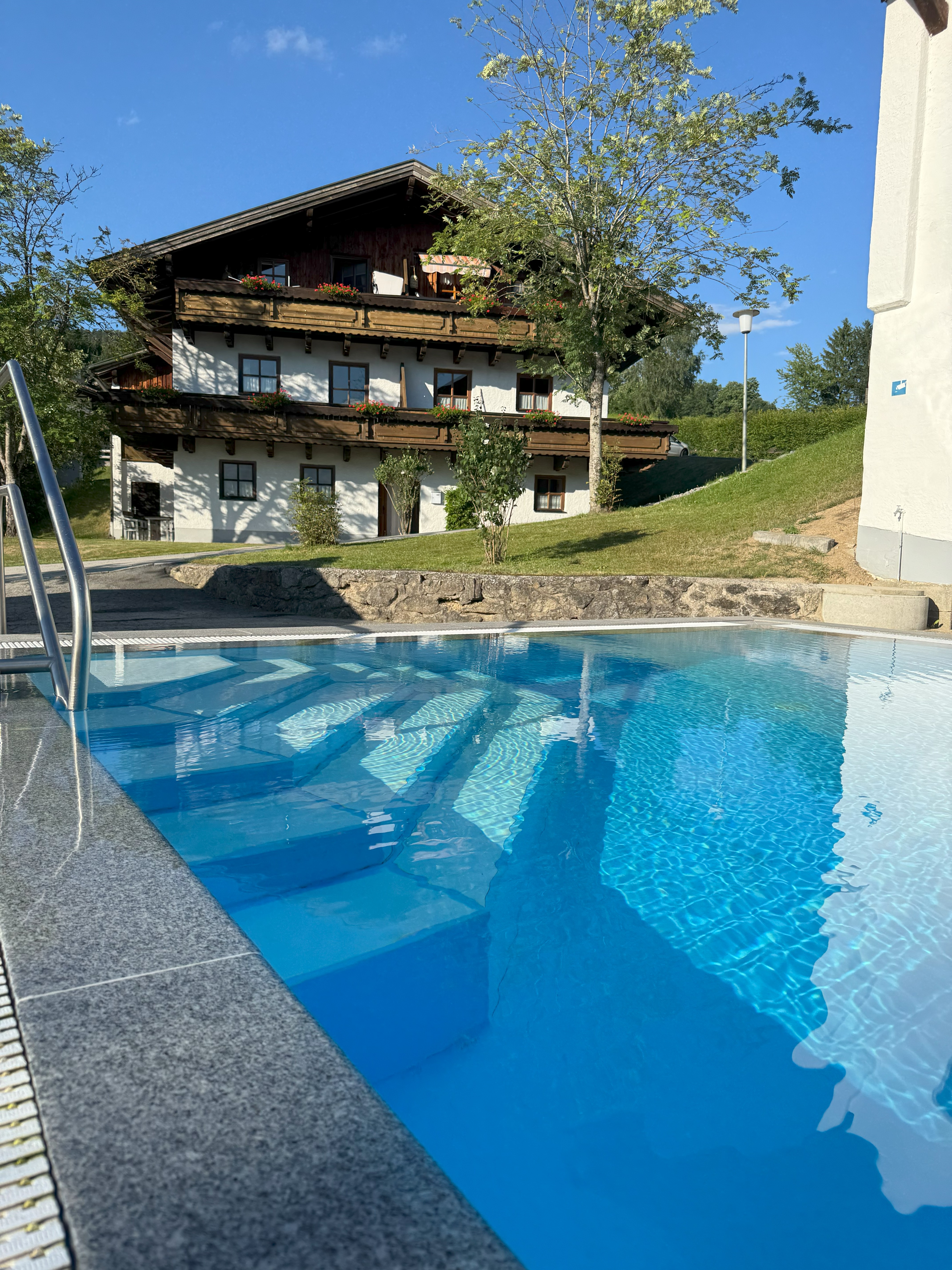 - 🌅 Balkon mit Blick auf den Pool und ins Grüne